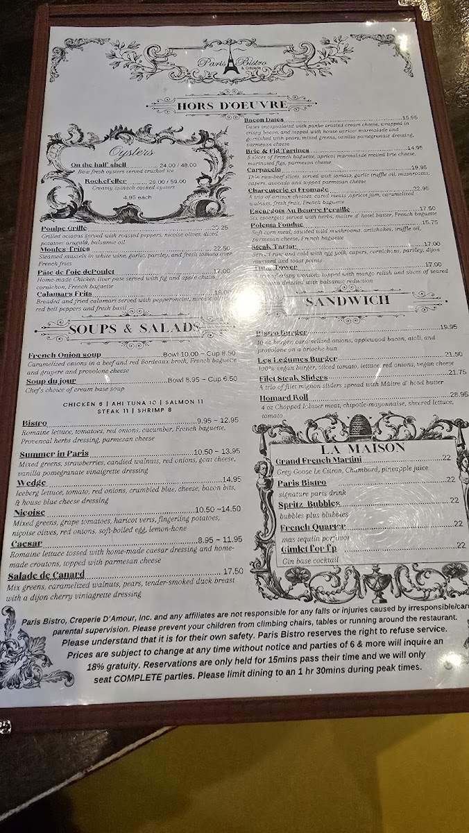 As you step inside, you're greeted by the warm ambiance, filled with soft light music that transports you straight to the streets of Paris. The decor is delightful, lush with French-inspired elements that create a cozy yet elegant setting. Each visit feels special; as customer Angie describes, it's like unwinding in a chic corner of Paris while relishing delightful culinary offerings.